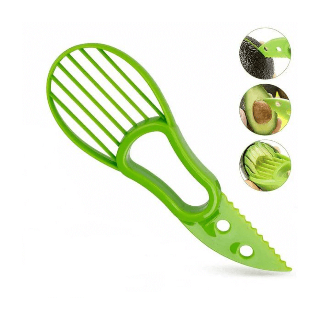 This versatile kitchen gadget features a jagged blade that splits avocado and removes pit, plus a slicer that divides avocado into even, uniform pieces—allowing you to lift pieces away from the peel without crushing them. Complete with a blade cover for safe storage, the BPA-free plastic avocado slicer is dishwasher safe.