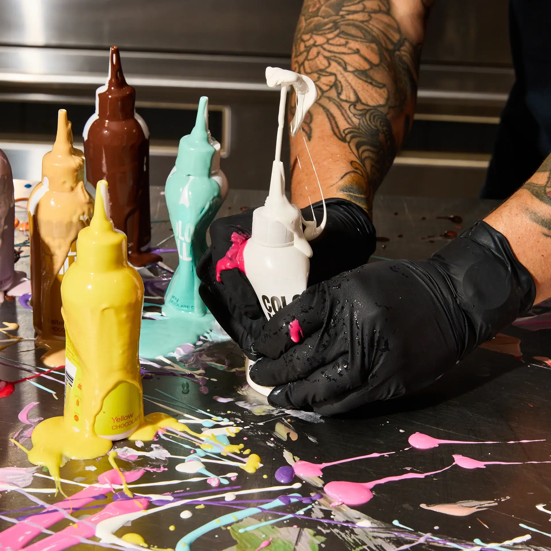 This easy-melt chocolate in a bottle is perfect for creating delicious drizzles, drips and decorations for your dessert creations.