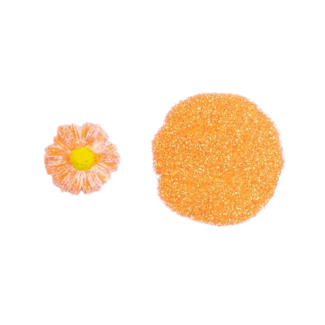 This color is a vibrant, bright orange glitter! Perfect for adding a little extra neon gleam!