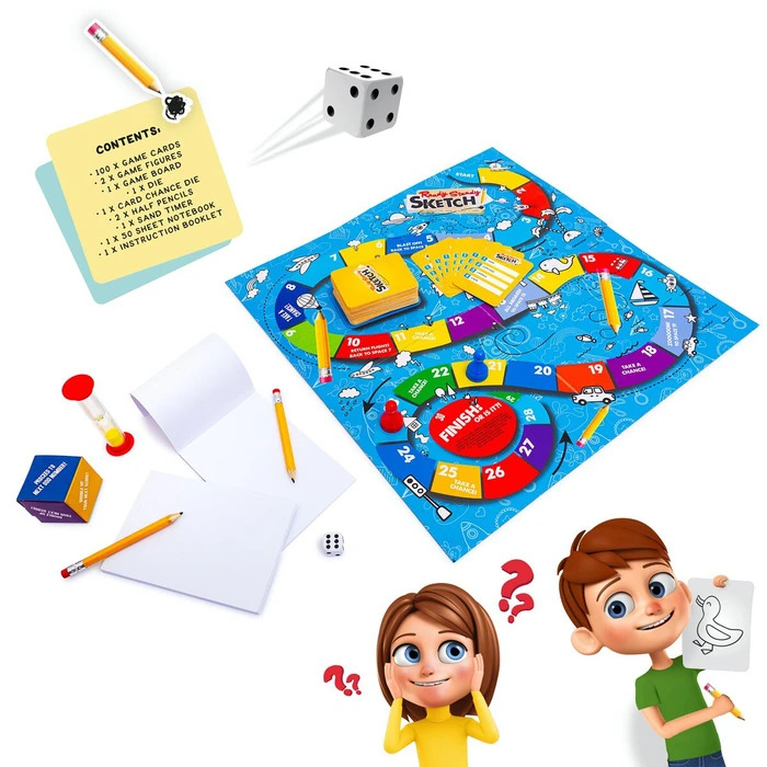 Sketch your chosen item from the game cards whilst the other players have to guess before the sand timer runs out. This game is fun for all the family to join in.